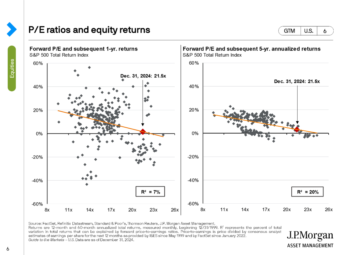 2025 would be the third year of a bull market. That would be rare. It has only had three years in a row of double-digit gains twice since 1940. The first year of a presidential election cycle is not usually a strong year. The S&P 500 index is priced significantly higher than its historical mean.